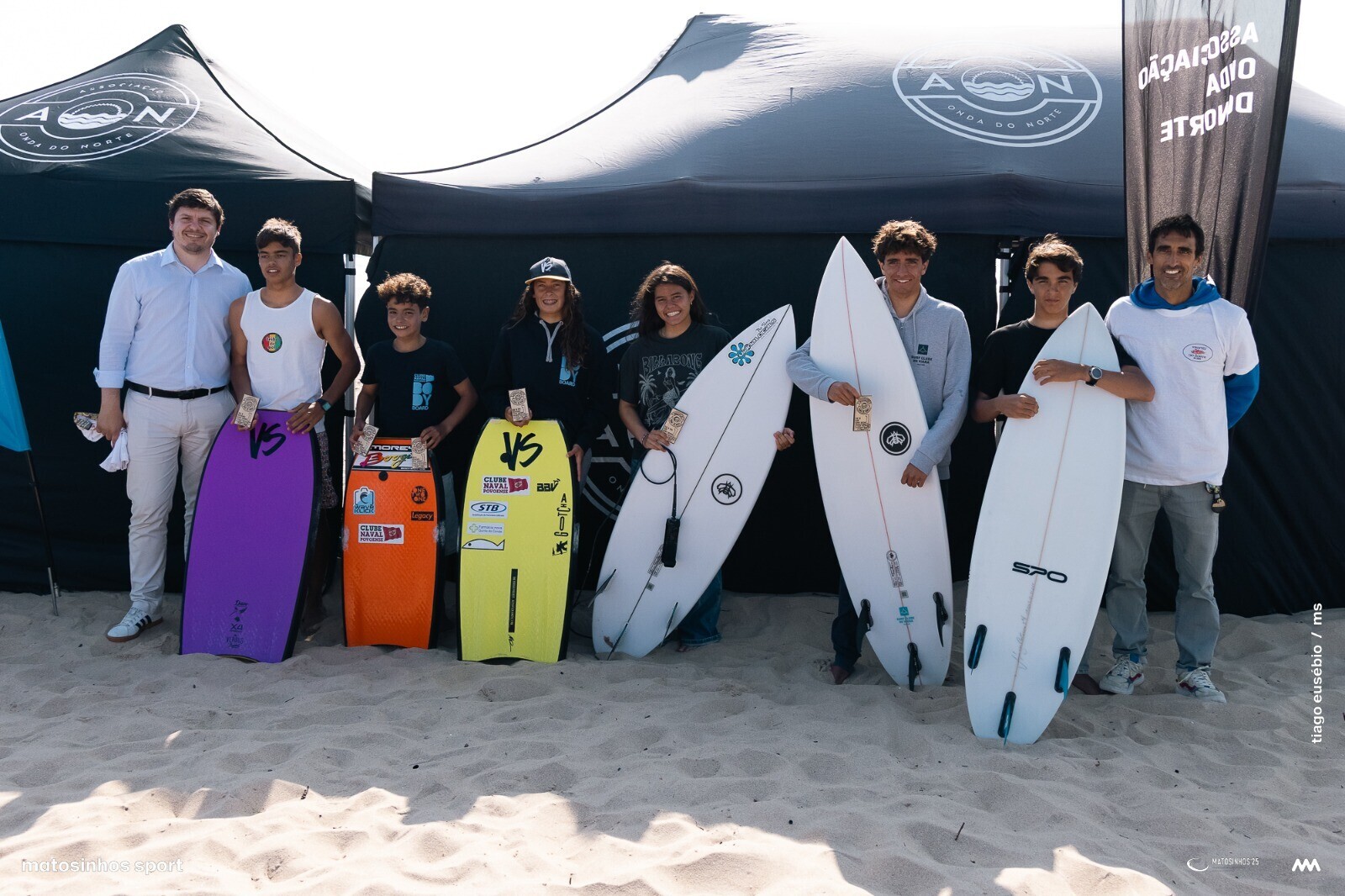 No que toca ao bodyboard, ouro duplo para Vicente Campos (sub-14 e sub-16, CNP), Miguel Jesus (sub-18 masc., AON) e Luana Dourado (sub-18 fem., CNP).