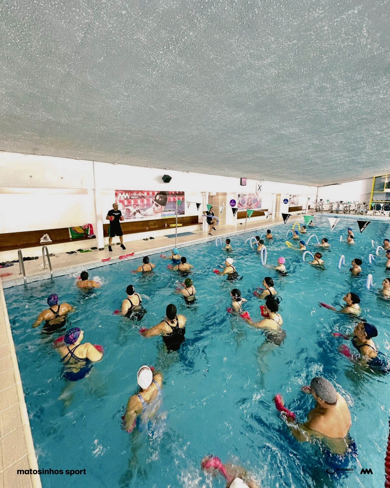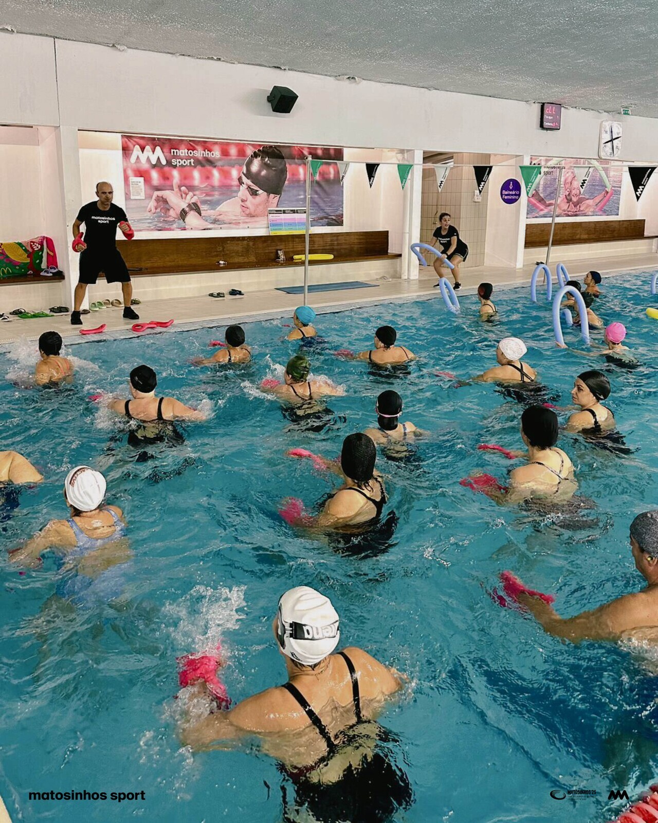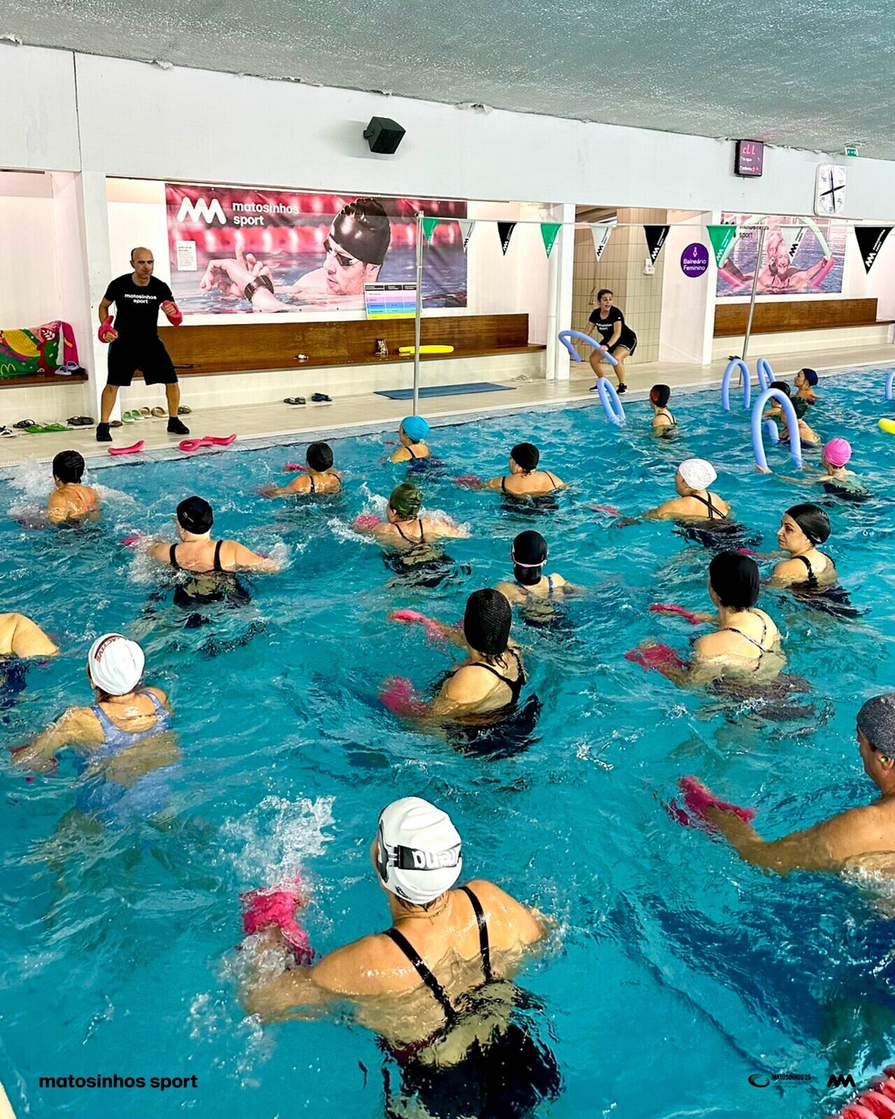 Com cerca de 60 participantes em cada piscina, a boa disposição, a música e o espírito festivo fizeram destas aulas momentos únicos de convívio e celebração.