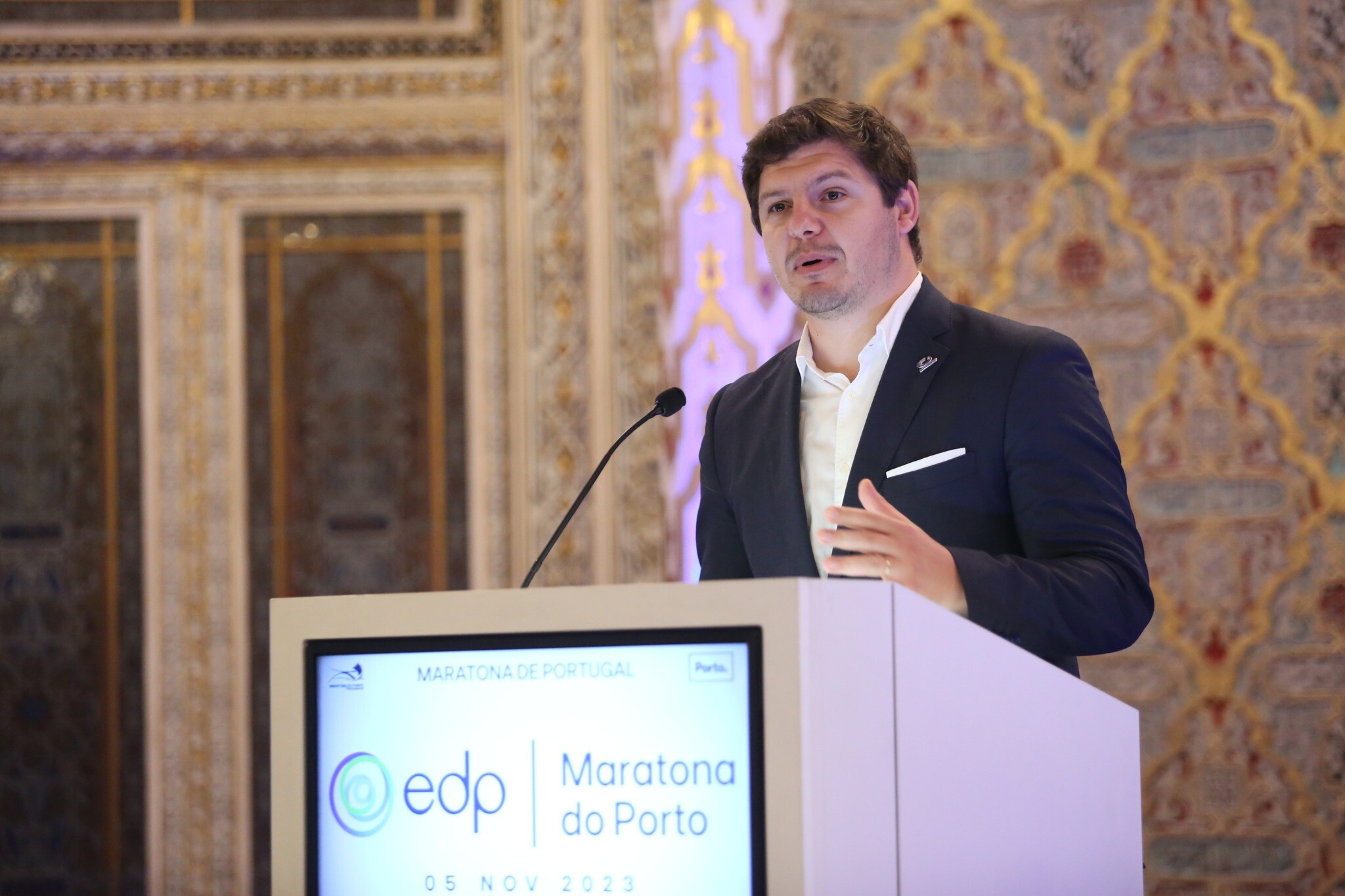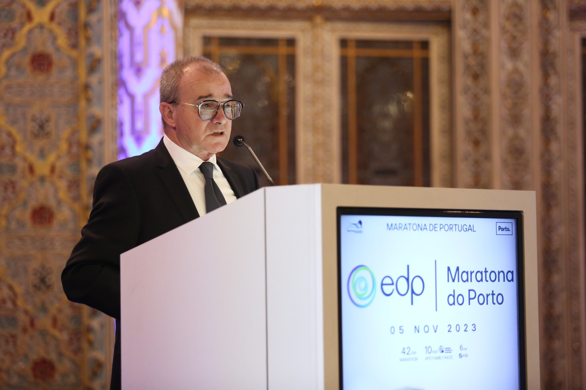 O Salão Árabe do Palácio da Bolsa recebeu hoje, dia 26 de outubro, a conferência de imprensa de apresentação da 19ª edição da EDP Maratona do Porto, numa cerimónia que contou com a presença de representantes das várias entidades envolvidas, desde organização, parceiros e patrocinadores, bem como dos Municípios da Frente Atlântica, Porto, Matosinhos e Vila Nova de Gaia.