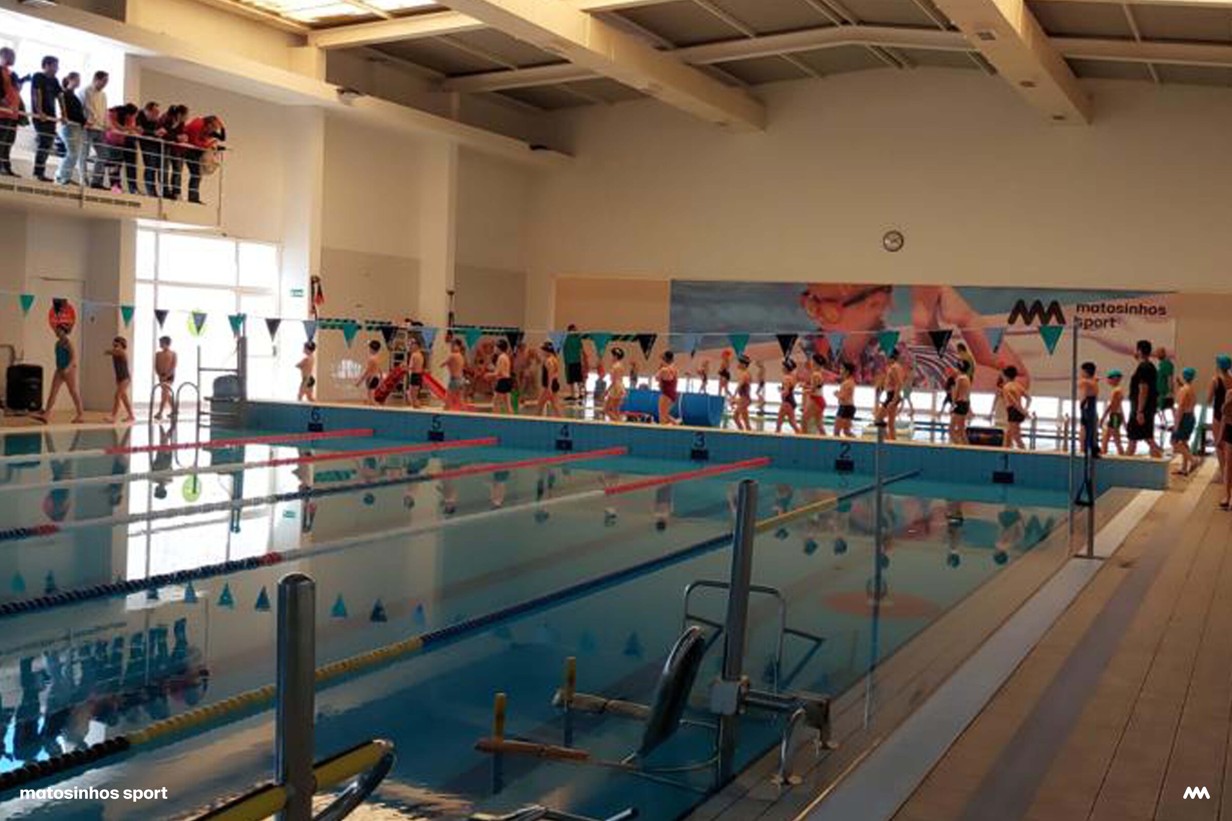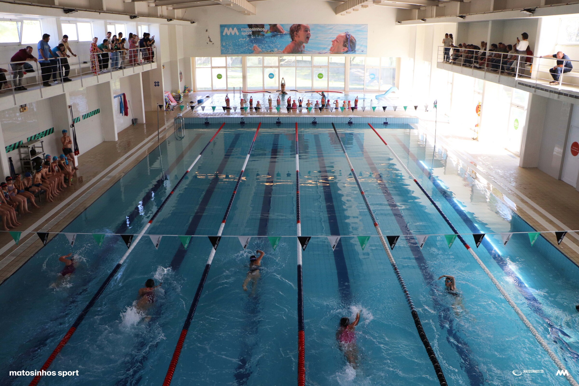 No âmbito do 20° aniversário da Matosinhos Sport, cujos festejos se propagam ao longo deste ano, encontra-se a decorrer este fim de semana, dias 15 e 16 de abril, nas 7 piscinas municipais de Matosinhos o Festival de Natação Junior que conta com cerca de 800 participantes. Estas provas, não cronometradas e por isso meramente lúdicas, pretendem apresentar aos pais e amigos/as dos/as alunos/as da Matosinhos Sport a evolução técnica e a progressão pedagógica dos/as jovens nadadores/as desde o início da época, em ambiente de festa e animação.