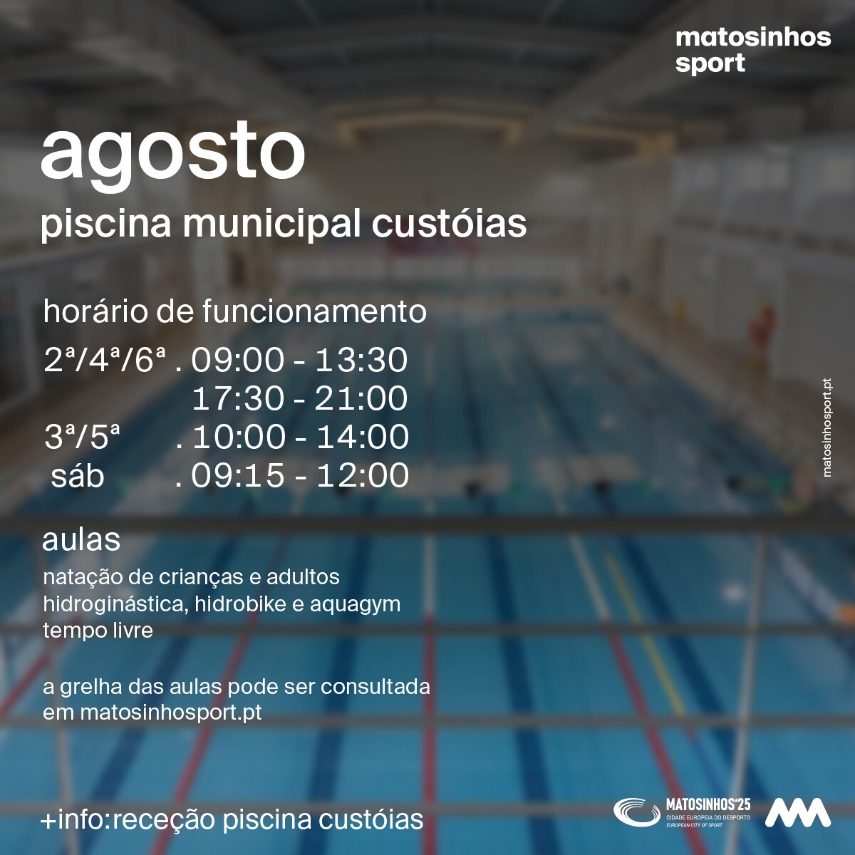 ℹ Mais informações e horários na receção da piscina e em www.matosinhosport.pt