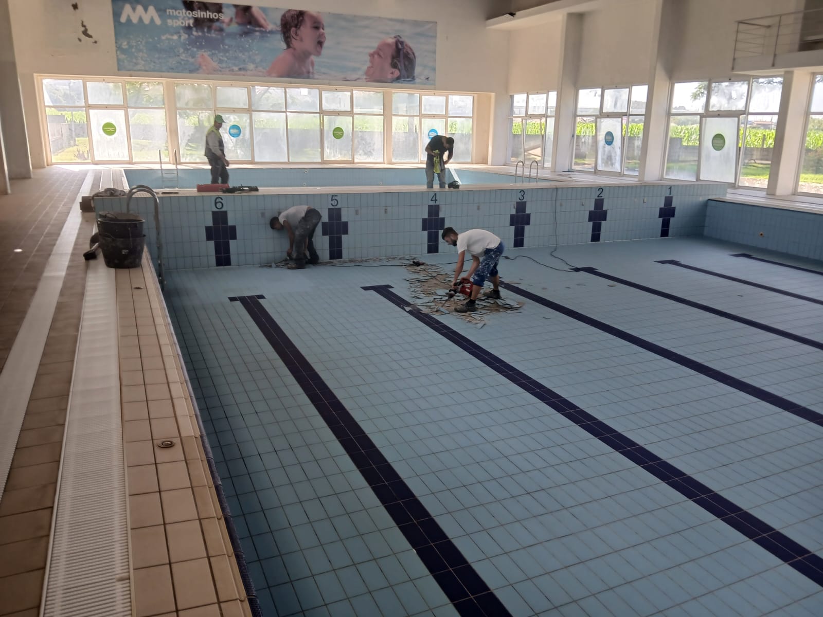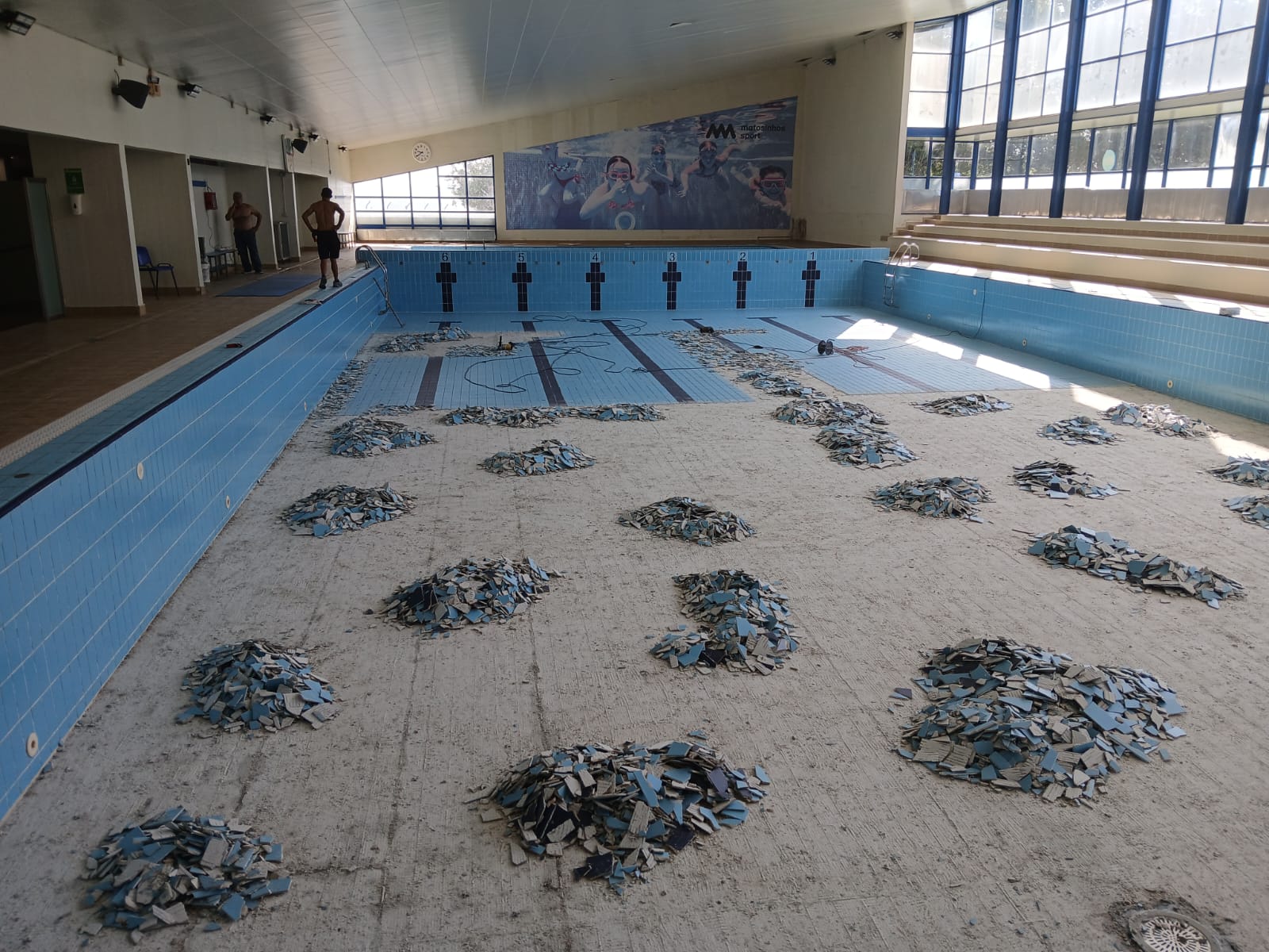 Em agosto, além da habitual manutenção, mais intensiva e extensiva, também as piscinas de Guifões e Matosinhos serão alvo deste tipo de intervenções que não são passiveis de ser efetuadas com o equipamento em funcionamento, e que se prendem, essencialmente, com a substituição de cerâmicos dos tanques, tetos e pavimentos das naves, entre outros.