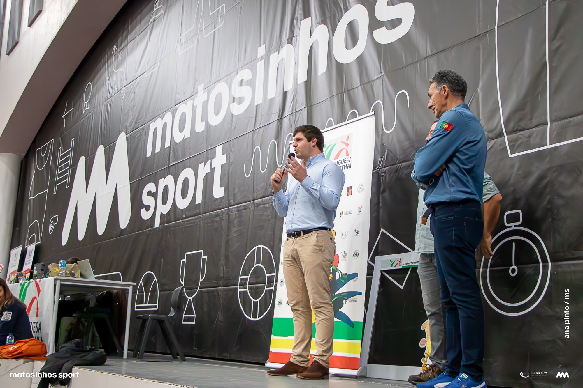 Nuno Matos, vereador da Autarquia com o pelouro do desporto esteve presente na cerimónia de encerramento, acompanhando Nuno Margaça, presidente da FPKM - Federação Portuguesa de Kickboxing e Muaythai, entidade que organizou o evento com o apoio da Câmara Municipal de Matosinhos e da Matosinhos Sport.